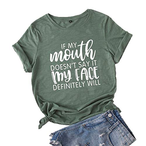 JTJFIT If My Mouth Doesn't Say It My Face Definitely Will T-Shirt Women Tee Casual Short-Sleeve Girl T-Shirts Top