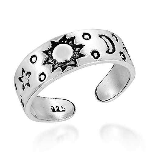 AeraVida Celestial Sky Sun Moon and Star .925 Sterling Silver Toe Ring or Pinky Ring