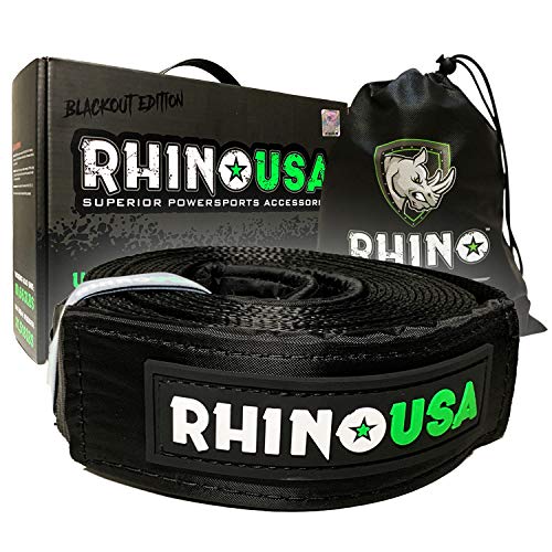 Rhino USA Recovery Tow Strap 3" x 20ft - Lab Tested 31,518lb Break Strength - Heavy Duty Draw String Bag Included - Triple Reinforced Loop End to Ensure Peace of Mind - Emergency Off Road Towing Rope