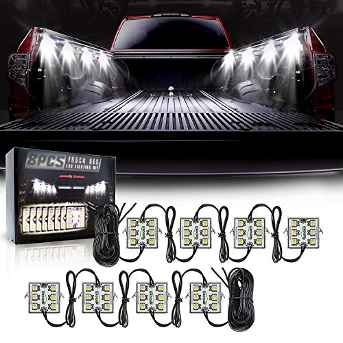 8PCS LED Truck Pickup Bed Lights Kit, 48 LEDs Truck Cargo Pickup Bed Lighting Kit with Switch, IP68 Waterproof for truck Bed, Under Car, Rail Light Cargo