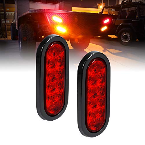 2pc 6" Red Oval LED Trailer Tail Light Kit [DOT FMVSS 108] [SAE S2TSI6P2] [Grommet & Plug Included] [IP67 Waterproof] [Stop Turn Tail] Trailer Brake Lights for Boat Trailer RV Trucks