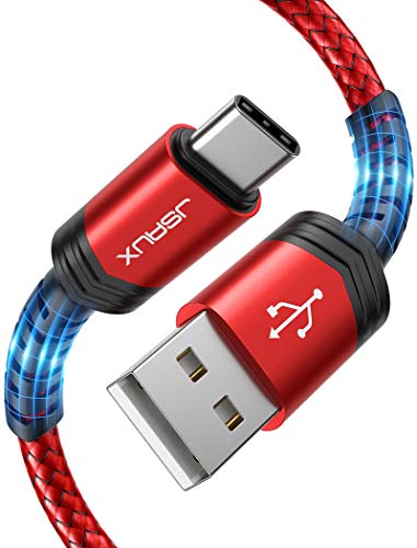 USB Type C Cable 3A Fast Charging [2-Pack 6.6ft], JSAUX USB-A to USB-C Charge Braided Cord Compatible with Samsung Galaxy S10 S9 S8 S20 Plus A51 A11,Note 10 9 8, PS5 Controller, USB C Charger(Red)