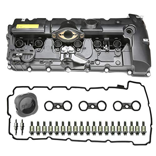 Engine Valve Cover Kit with Oil Cap & Gaskets & Spark Plug Seals & Bolts Compatible with 2007-2013 BMW E70 E82 E88 E90 E91 Z4 X3 X5 128i 328i 328xi 528i 528xi X3 X5 Z4 3.0L N51/N52 Part# 11127552281