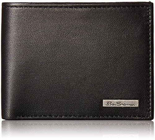 Ben Sherman Men's Brick Lane Sheepskin Leather Traveler Passcase Wallet with Logo Pla