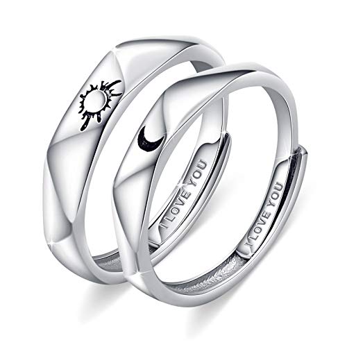 Beydodo 925 Sterling Silver Rings Engagement Couple Rings Sun and Moon 2In1 I Love You Rings Adjustable Custom