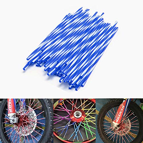 JOYON 72 Pcs Universal Spoke Skins Covers Coats for Motorcycle Dirt Bike Kawasaki Honda Yamaha BMW Suzuki(Blue & White)