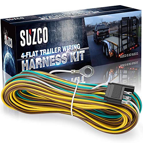 SUZCO 36 Ft 4 Wire 4-Flat Trailer Light Wiring Harness Extension Kit, Custom-Made 28' Male & 8' Female with 4' White Ground Wire, 4-Way Plug 4 Pin Male & Female Extension & Wishbone-Style & SAE J1128