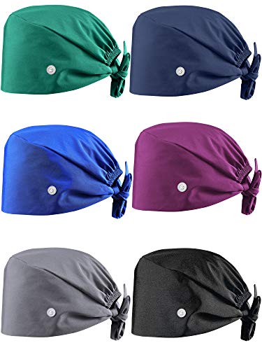 SATINIOR 6 Pieces Gourd-Shaped Working Caps with Buttons Adjustable Bouffant Hats Multicolor Tie Back Caps