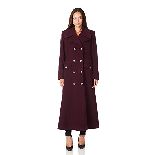 De La Creme Womens Burgandy Long Military Wool Cashmere Winter Coat Size 18