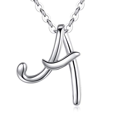EUDORA Sterling Silver Necklace 26 Letters Alphabet Personalized Charm Pendant with 18inch O-Ring Chain