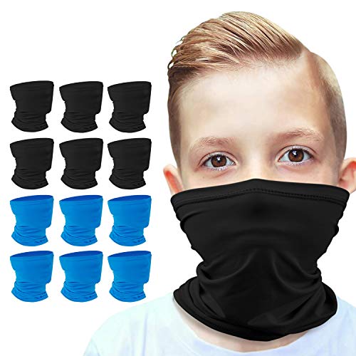 Anstronic [12-Pack] 6-14 Years Kids Cooling Neck Gaiter Scarf, Breathable Bandana Face Bandana Cover for Boys Girls